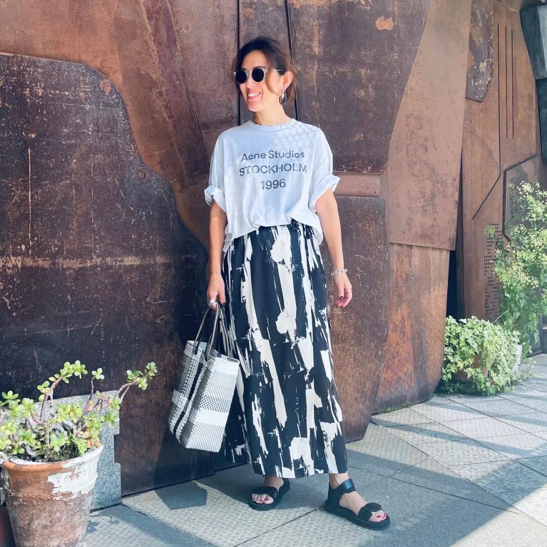 夏季最喜欢宽松T恤的我看到她这一套觉得好适合逛街溜娃出门了,而且长裙到脚踝能够遮挡住太阳。