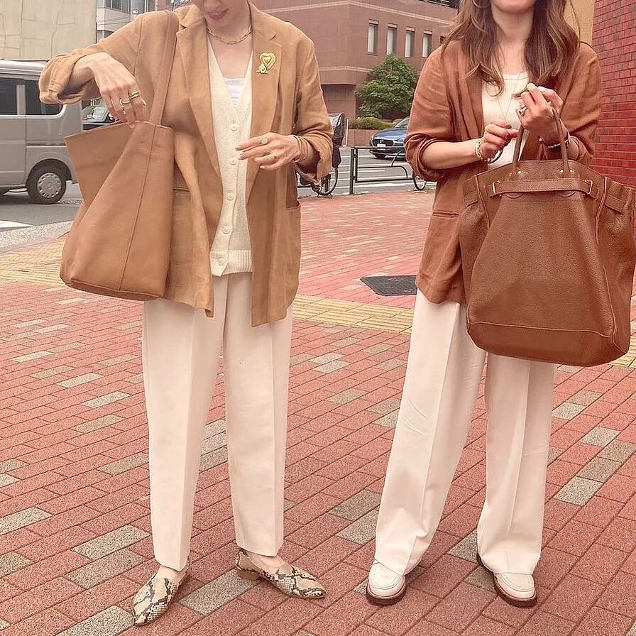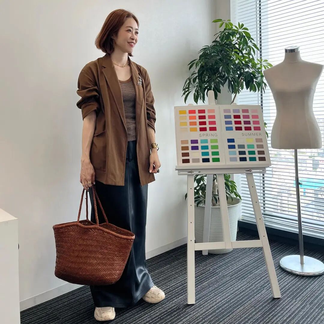fumiko夏日穿搭一直保持着她最喜欢的颜色,棕色、大地色、米色...而且每次想到这几个颜色就会想到她,还有她喜欢胸针那些别致的金色小配饰,风格一直很稳定,不看脸也会想到这是属于她的配色和调调。