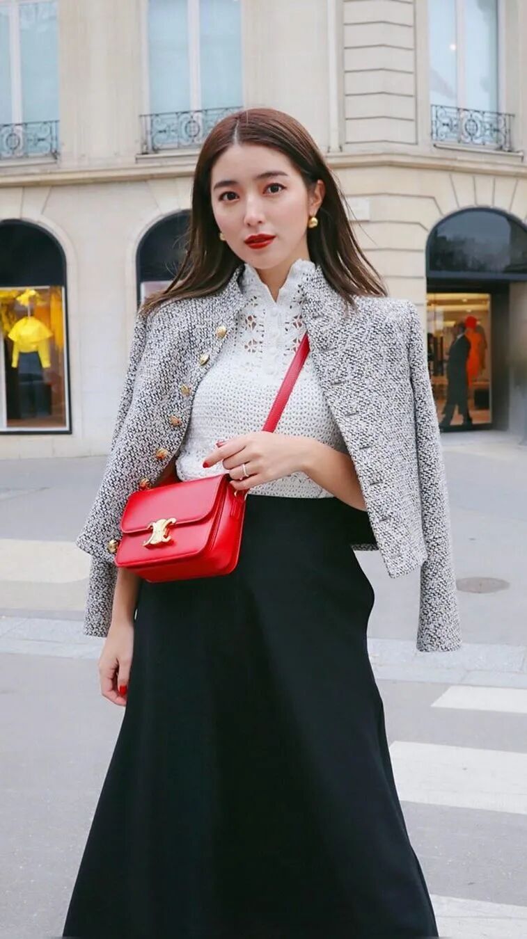 而且作为皮肤并不白皙的一员,智惠美还精准的找到了最适合自己的颜色:正红色!红色衬得她气色特别健康,她有好几组红色look都非常惊艳。