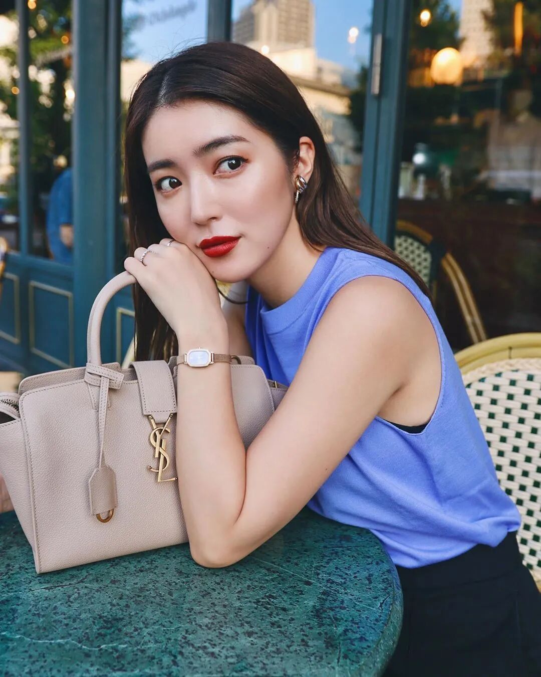 大口智惠美善于找准自己的长相风格,并加以利用。通过明艳的色彩和复古的单品来打造自己港式名媛的风格。