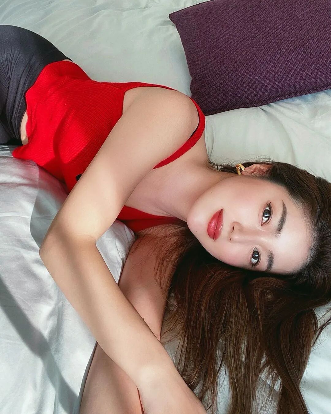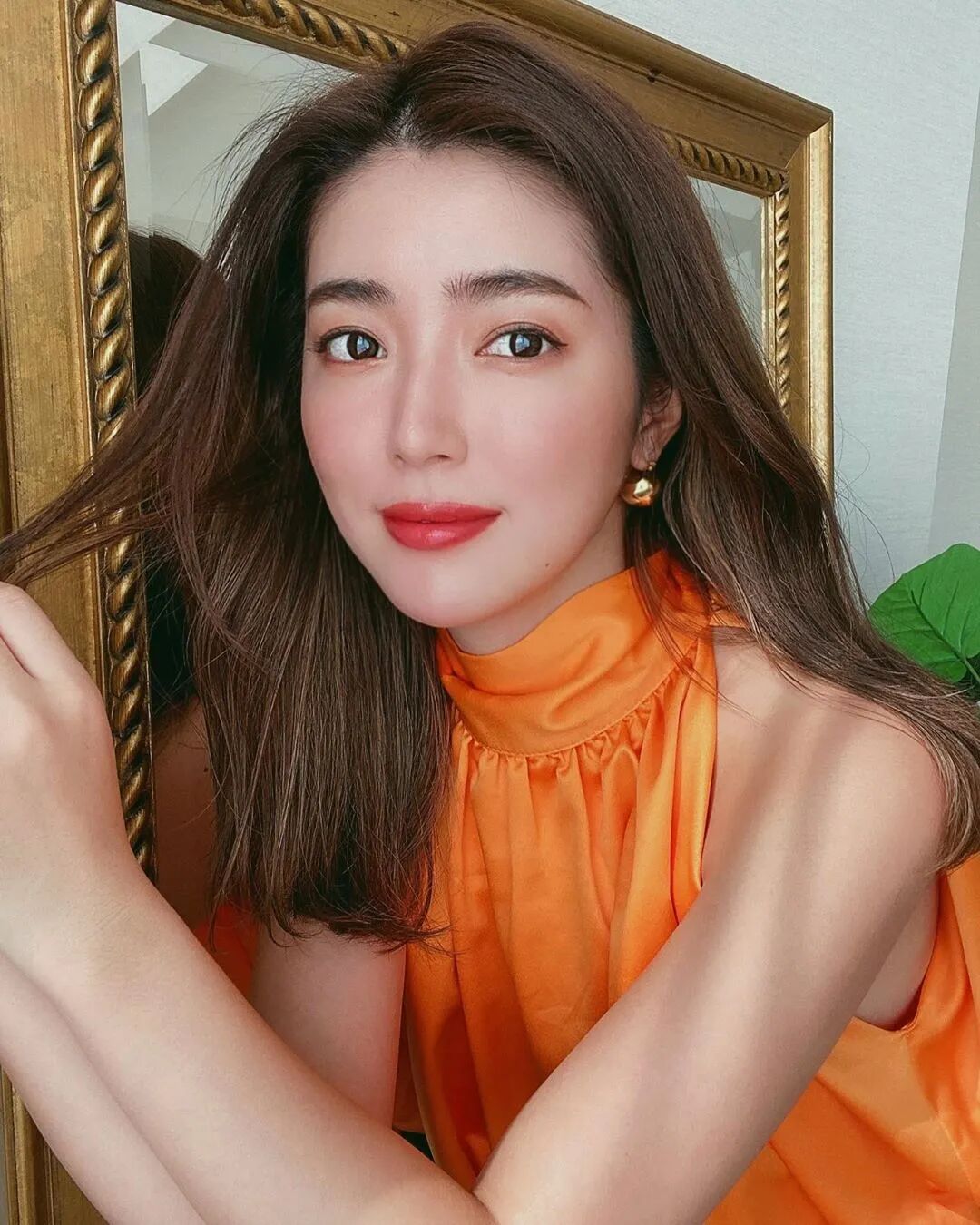 在妆容方面也一样,浓眉大眼的她驾驭起亚光且浓郁的妆面,更能凸显复古和高级。尤其是正红、姨妈红、橘棕色系的妆容,特别适合她?: