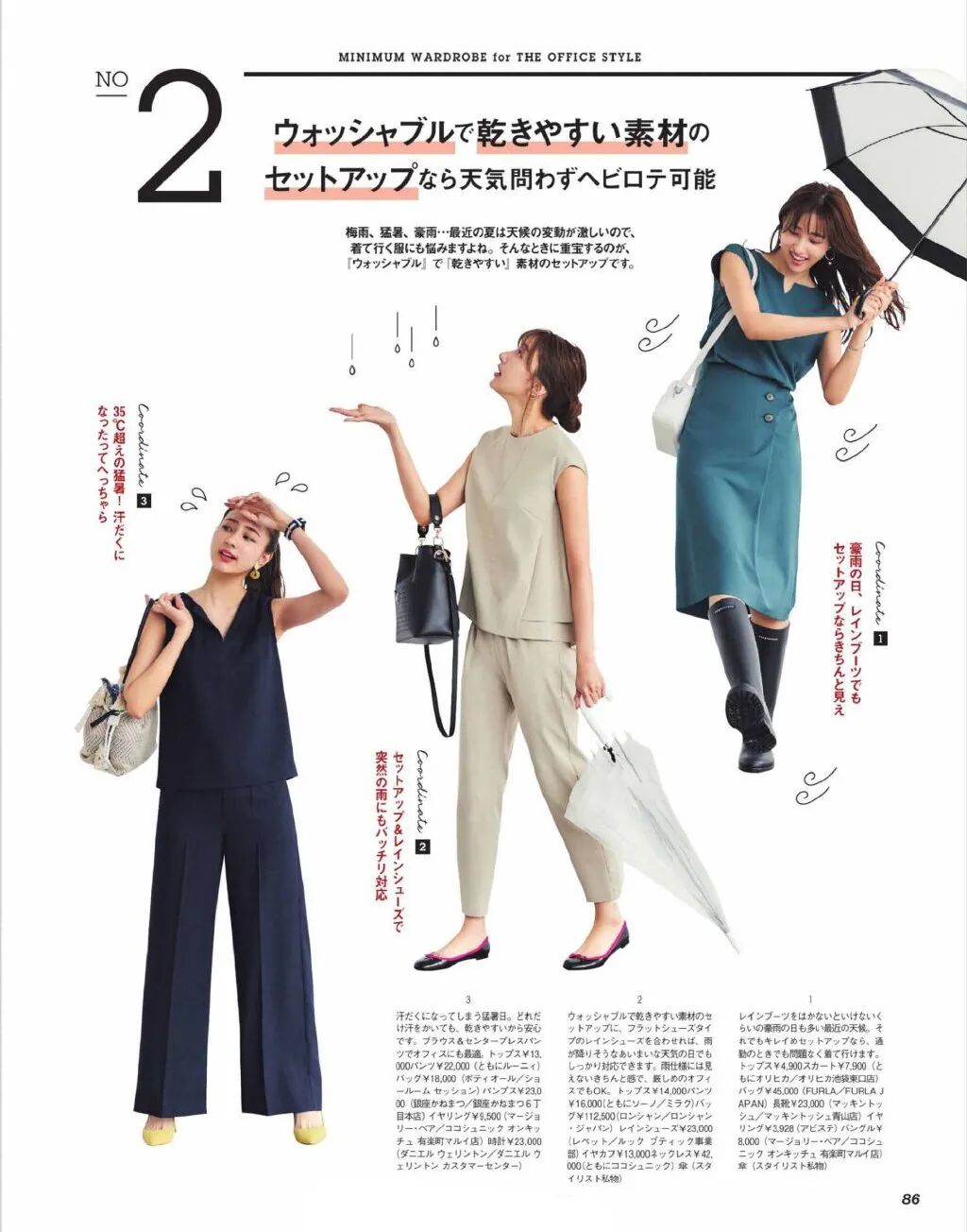 而且他们还经常推出那种类似胶囊衣橱的专题,比如8月刊就有个“OL衣橱仅有四件主打单品就够了”的主题,呼吁大家一衣多搭?。