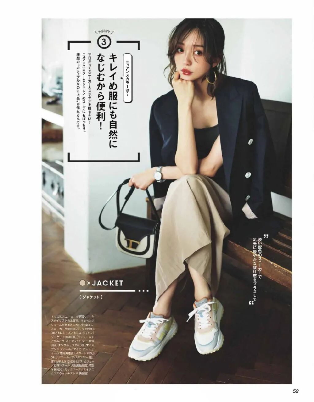 最新的9月刊,《CLASSY》还推出了运动鞋专场。而且细看你能发现,即便是运动鞋,也都是适合通勤穿的搭配方式?。