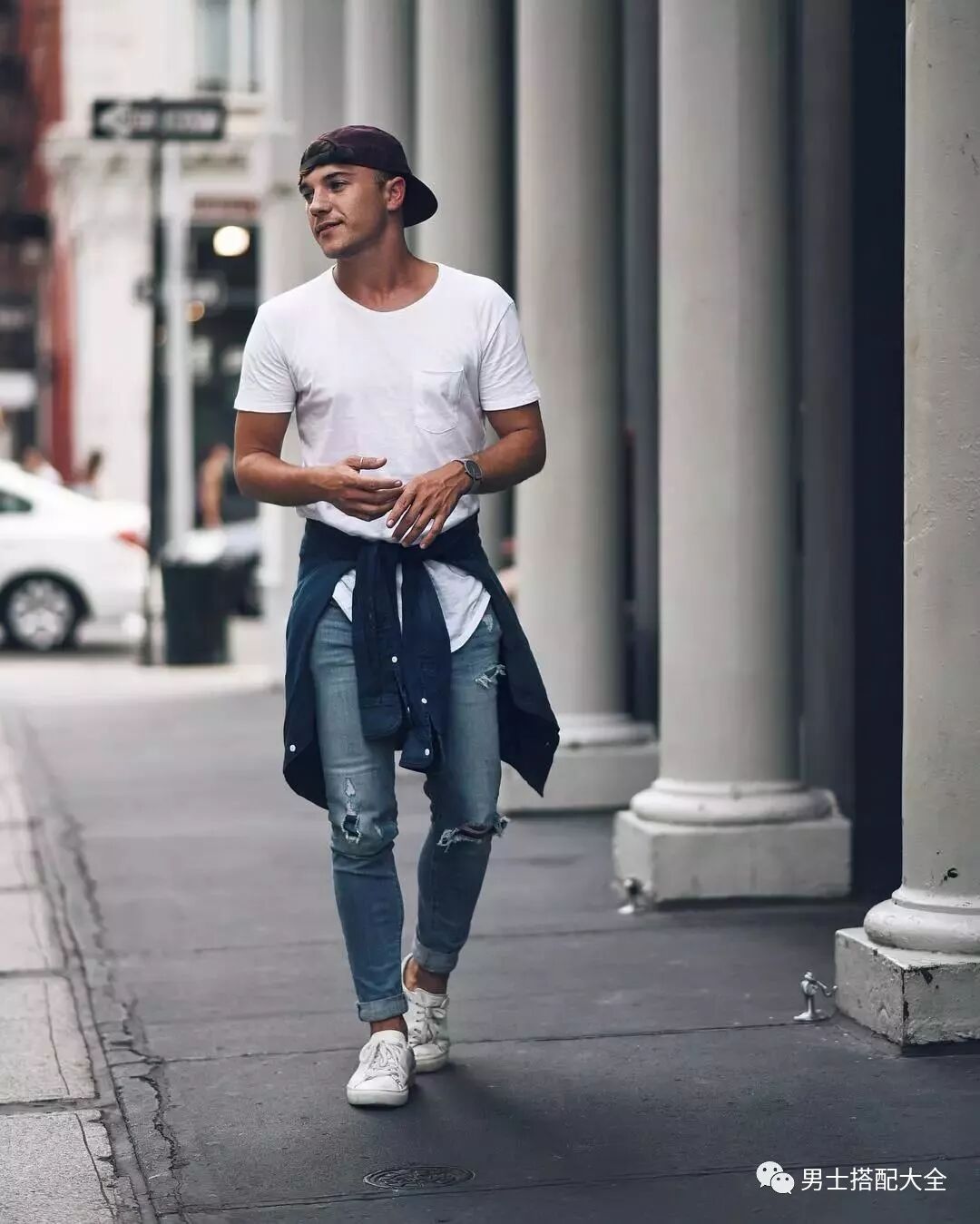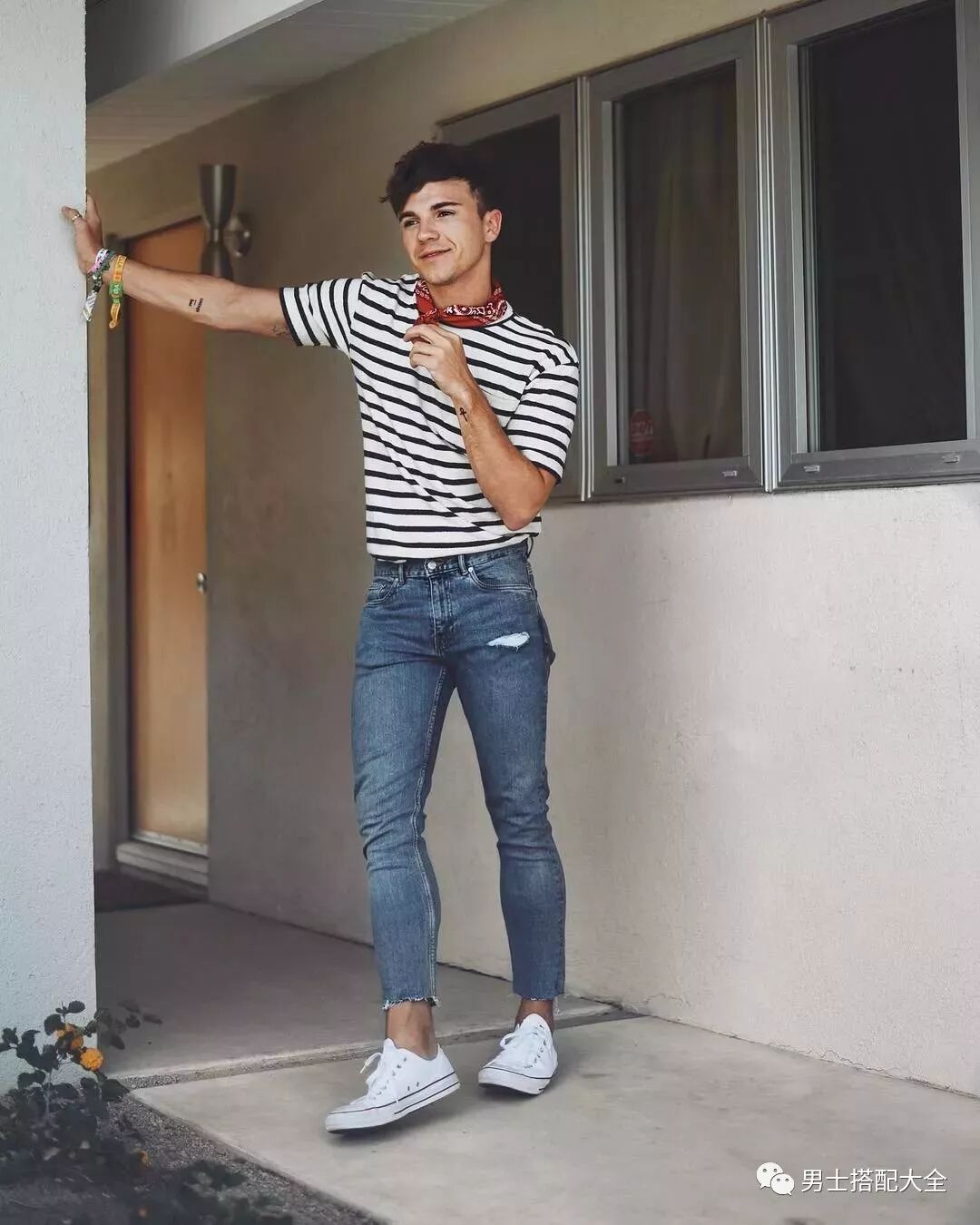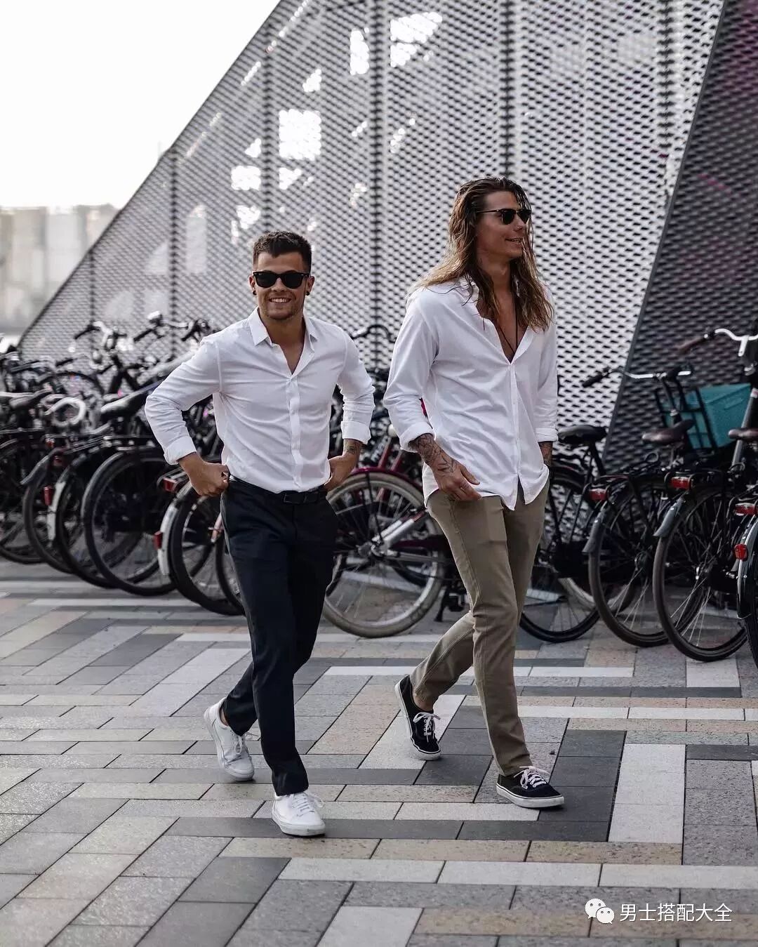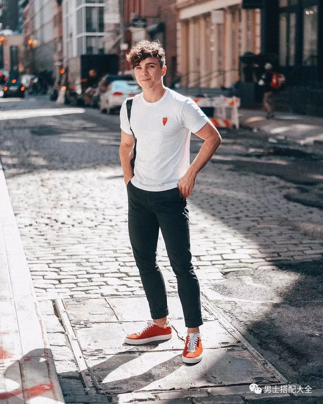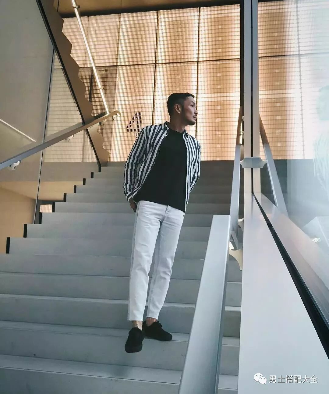 注意裤脚不要卷的太高,否则会截短你的腿部比例,另外不想卷裤脚的话,可以选择裤管刚好遮住鞋面的位置,值得强调的是千万不要让裤子堆叠在你的脚面上,这样非常的邋遢。