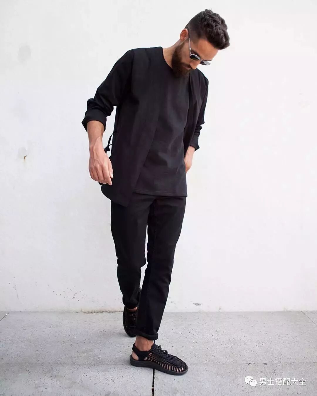 说到同色系搭配不得不提的就是all black,它是最不容易出错的搭配法则,如果觉得搭配过于沉闷,那么在材质和款式的选择上你就要多花一点心思,所以想要通过黑色打造高级又时尚的感觉,其实也是很简单的。