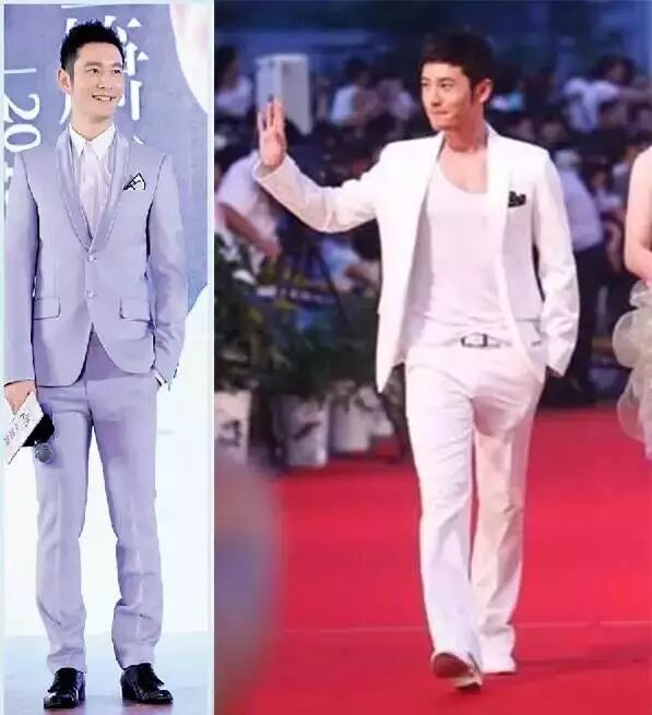 可以看图片对比下,明度高的颜色在视觉上具有膨胀感,能够更显高。黄晓明穿灰色正装还是挺清新的。
