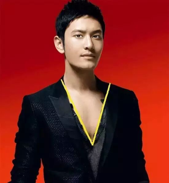 这个区域是着装的视觉中心,V区越深越窄越显高,因为V字的轮廓本身是拉长身形的结构线条。比如,我们的教主穿的深V