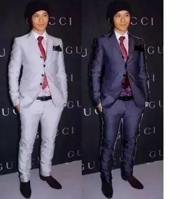 高明度颜色的西装比低明度的西装更显高,但为了考虑到亚洲男士大多数不会穿太出挑的颜色,选择灰色西装最合适了。