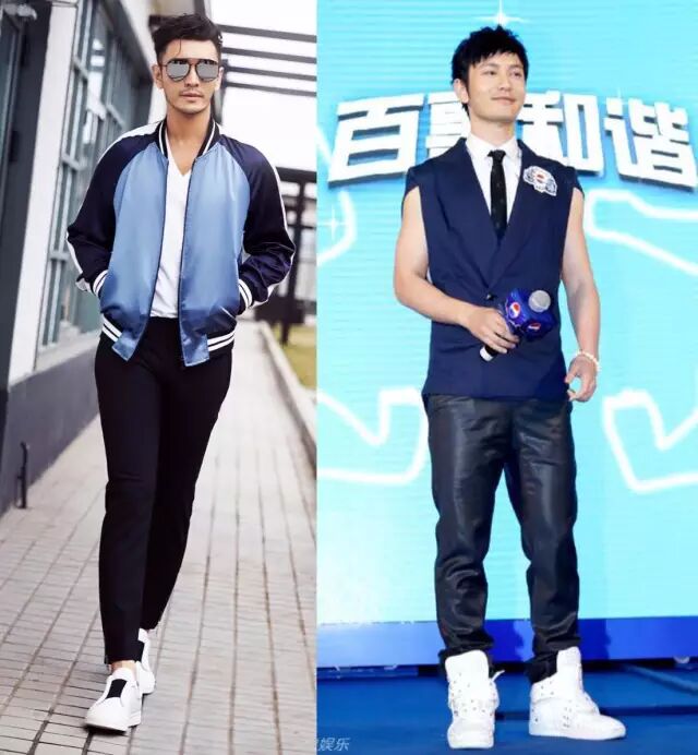 小白鞋能显高,因为白色与环境中的颜色更接近,或者说白色最容易受到环境影响,这样的话,就会拉长下身的感觉,自然显个子高。还有,小白鞋可搭配的比较多,属于男士穿搭的基本款。我们也经常看到黄教主穿着小白鞋。