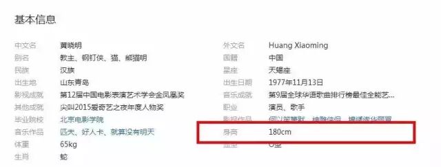 黄晓明的身高是多少?百科中是这样写180cm。