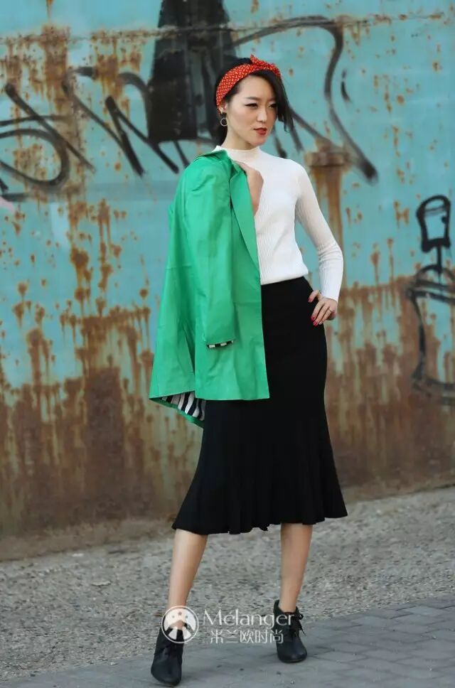 “隔离法”是一种“红配绿”最高级的搭法,就是在两种颜色比较鲜艳,面积比较对等的情况下,加入色彩相对弱且彩度不高的颜色进行调和,比如黑白色、米色等,仍旧可以穿得很美很出彩。