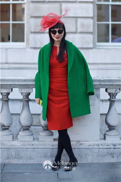 上图的红色是实色,绿色虚色,因为两种颜色相互碰撞的时候,红色是前进视觉感受,而绿色是后退的,降低了绿色裙子的饱和度,增强了整个搭配的层次美感。