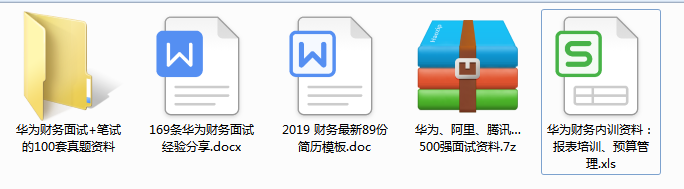 问我有没有什么经验告知,老师没有去过,但是老师有朋友在华为工作过,也有认识的人去面试过,对于他们提供的信息和资料,老师都给大家打包成资料,关于求职华为财务岗的面试资料以及工作资料,不管你在哪工作,相信都有用: