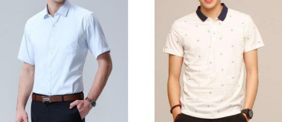 男士夏季尽量选择带领的服装,衬衫或保罗衫(上网搜索 “男士 POLO衫”),下身搭配西裤即可。如下图:
