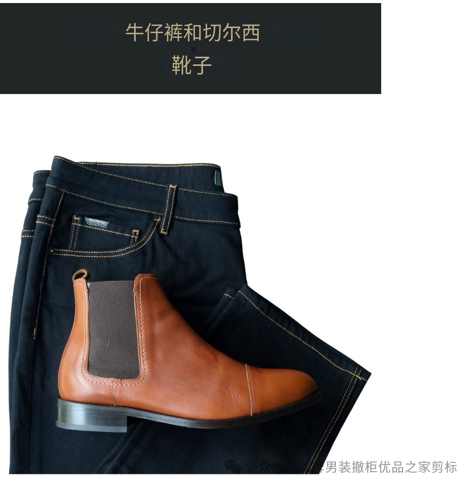 商务休闲:正装靴子或时尚的切尔西靴与深色水洗直筒牛仔裤搭配,可以在商务休闲环境中看起来精致而专业。