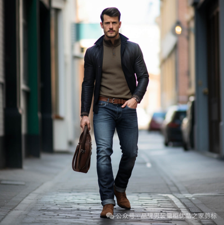 牛仔裤:深色水洗修身牛仔裤是您的首选。它们提供更时尚、更专业的外观。