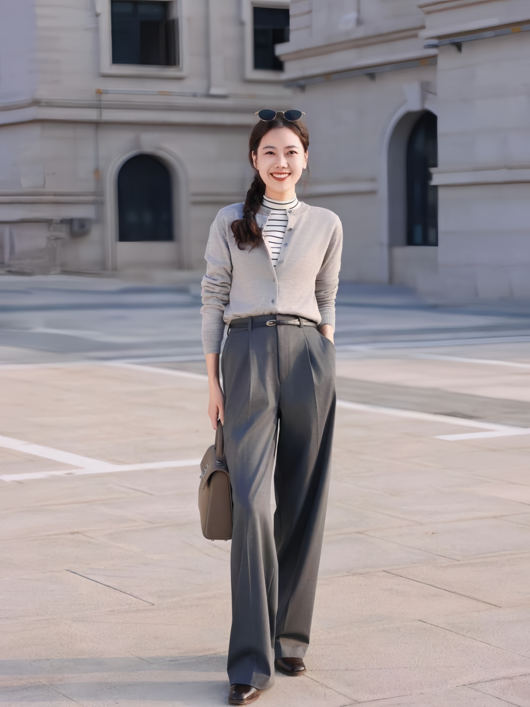 其次,直筒裤低调却很显质感,舒适度很高,不管是搭配衬衫和毛衣都非常不错,让女性美丽大方的气质展现得淋漓尽致。