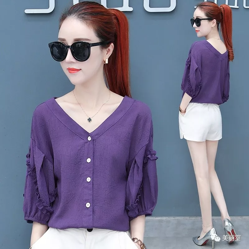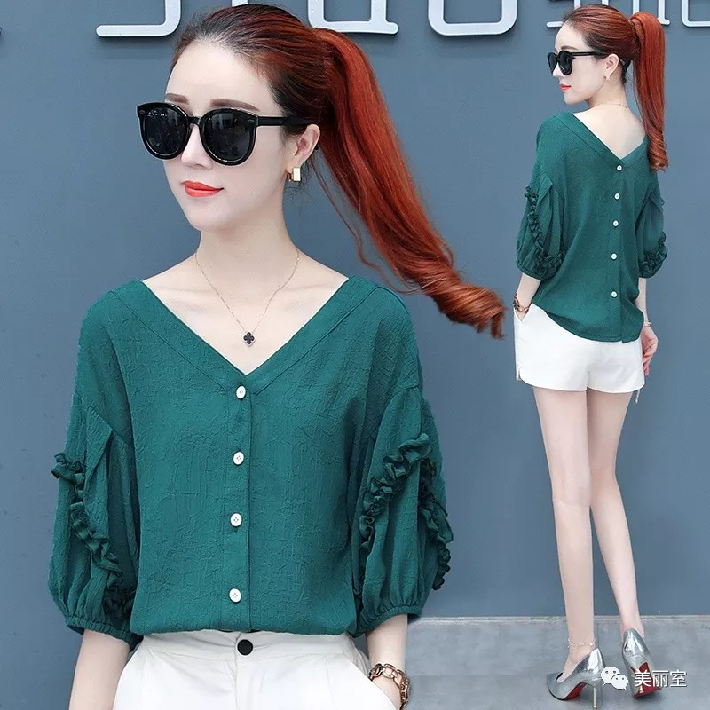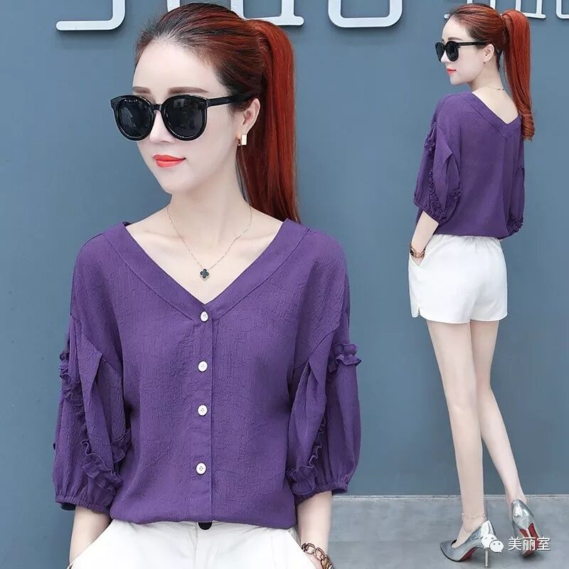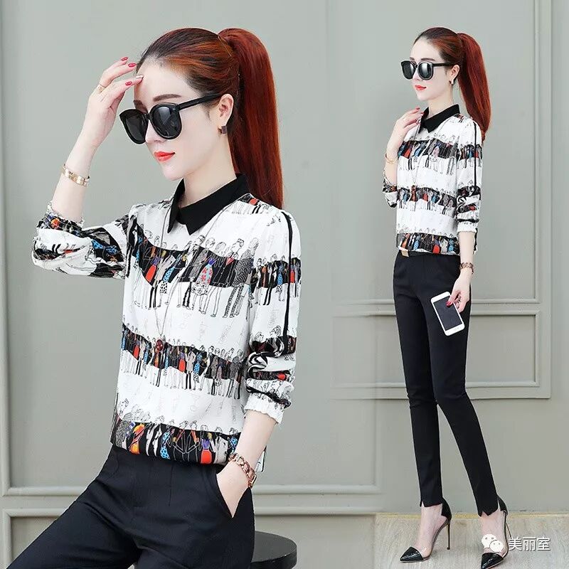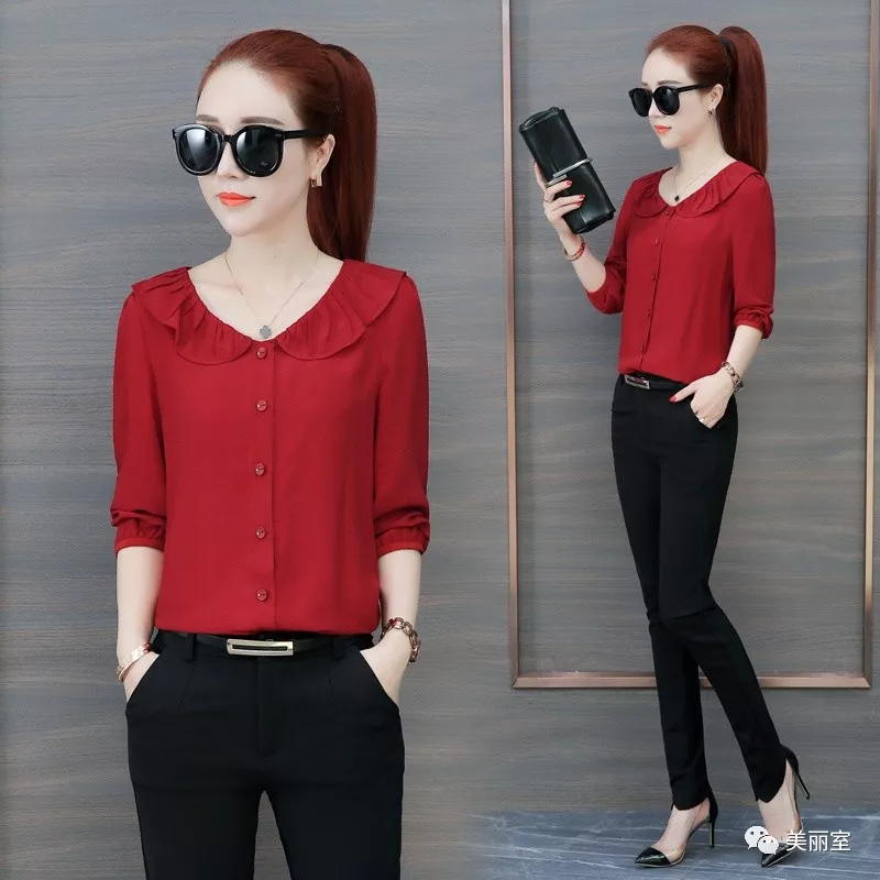 不管休闲上班都能穿的一款洋气小衫,干净利落的修身剪裁,加上甜美娃娃领,散发出浓浓的女人味。