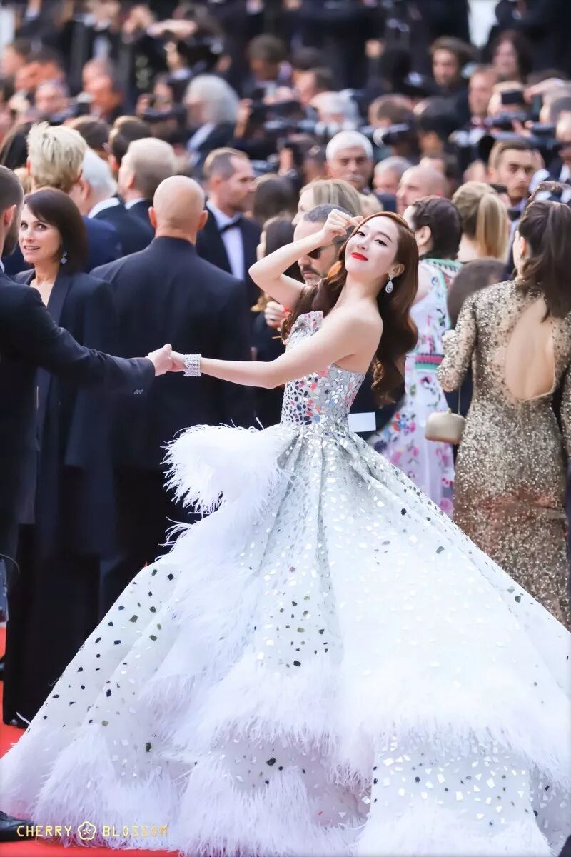 Jessica郑秀妍则以一条铺满羽毛和亮片的长裙华丽出席。还在红毯上比心卖萌,被摄影师成功抓拍,肥肠可爱哈哈。