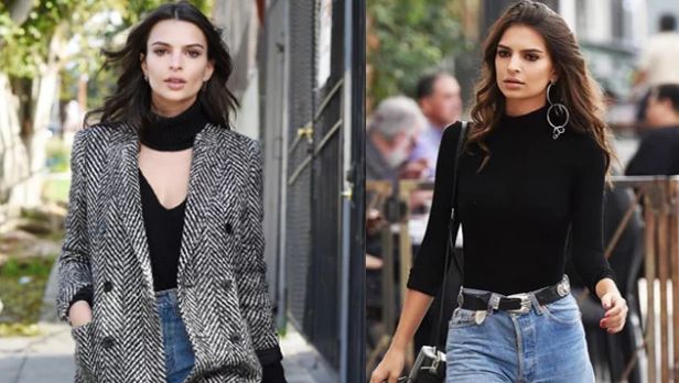 近年最流行的高腰牛仔裤打扮,常出现在Emily的私服风格中。可学习她另外搭配大耳环或腰带,增加整体亮点。另外,冬季穿高腰裤外搭毛呢大衣,也带有复古感觉。