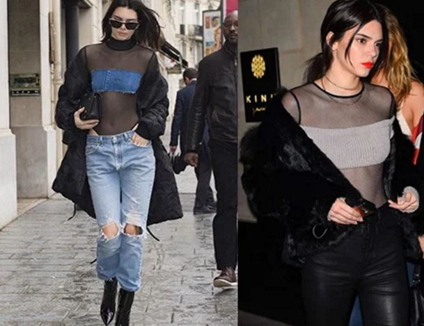 这根本是超模坎达尔珍娜(Kendall Jenner)专利啊!今年坎达尔常以黑色透肤薄纱亮相,里面搭配几乎只包住胸部的平口短上衣。这个搭薄纱的“阿嬷式”穿法,是否会因为她而造成抢购风潮呢?