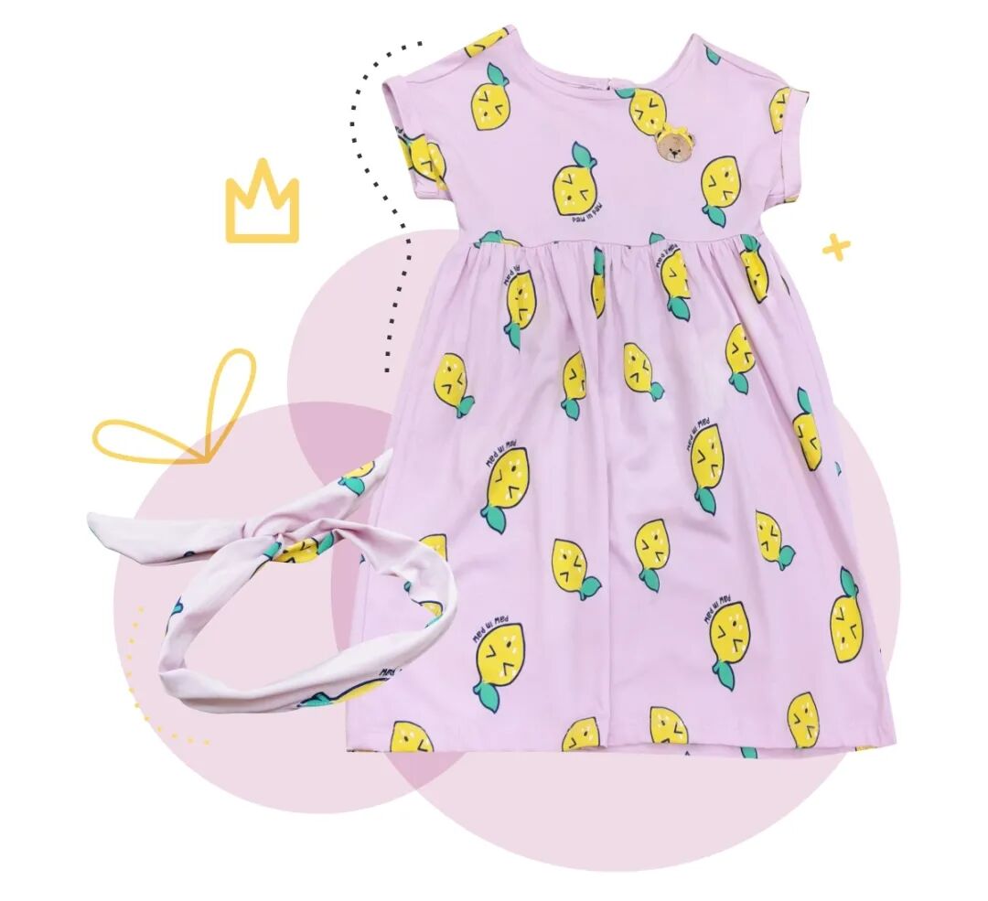 连衣裙免去了搭配的烦恼,温柔的粉紫色打底,调皮的柠檬软糖平铺点缀,甜甜的,酸酸的,想来一口吗~