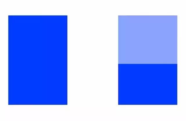 重塑腰线的比例可以先从穿搭的颜色开始入手,原理利用上下之间颜色明度的视觉差异来突显腰线,也就是经常说的对比色,上图中是两个相同的长方形,右图是色系不同的蓝色,相对于左图会要来得更加显高。