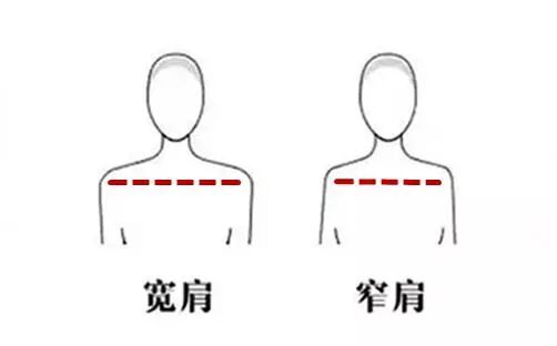 肩形一般可以分为窄肩和宽肩两种,从上图中可以看出,右边的人就属于窄肩的情况,整体的肩部线条,在视觉上看上去比较单薄,这样的肩形是不太容易撑起版型稍大的韩系上衣的,所以就要加宽一下肩部线条。