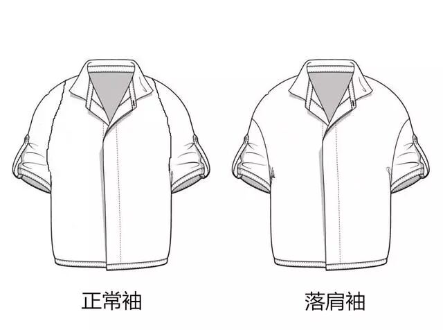 小个男还可以通过改变上衣肩形来延伸肩线,上图是关于上衣肩形的示意图,左图的袖子肩线处于实际肩线处,而右图的是落肩袖,上衣的肩线宽度要宽于实际肩线,很明显落肩袖延伸肩线效果比正常袖的来得好。