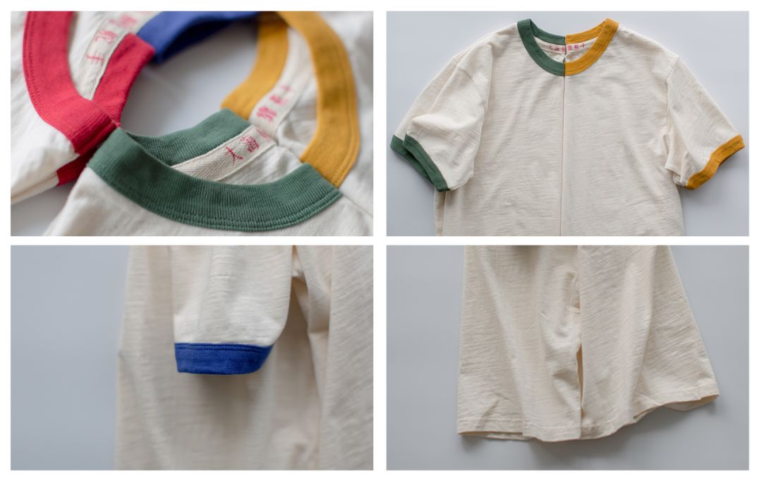 不同于常见的白T,这件米色短袖很复古,领口和袖口都用了撞色设计,单穿也很赞。竹节棉面料,干爽透气,老式织布机加上古老织法打造,做工不错。这款有五色可选,下摆略长,建议束进裤子。