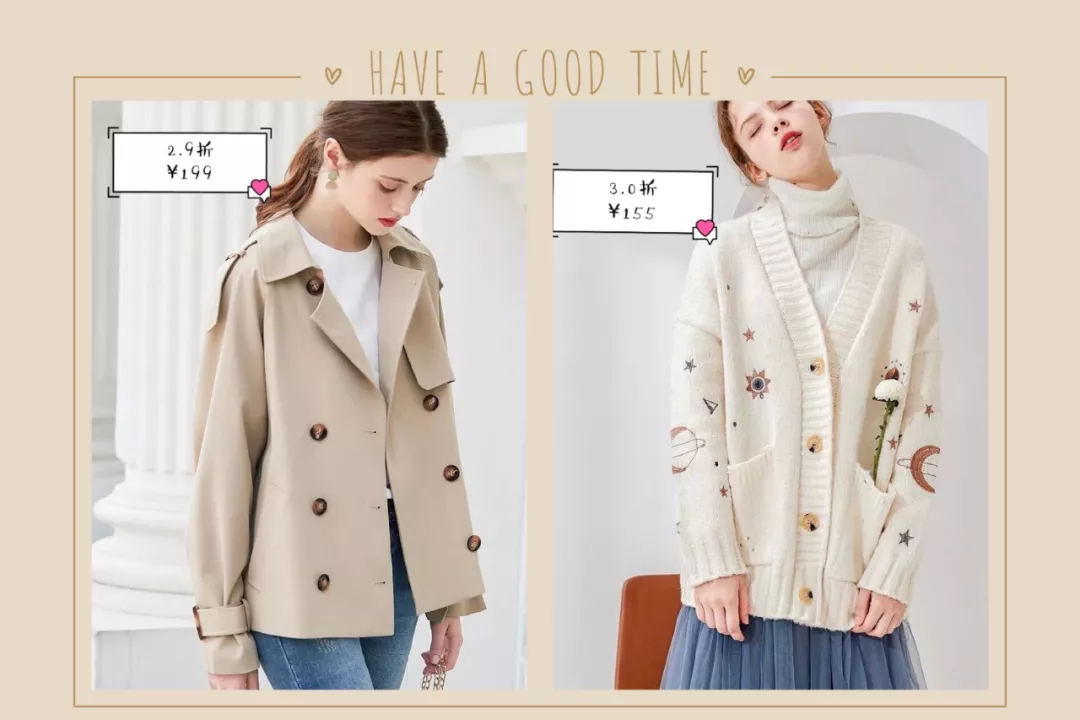 除了上面推荐的心水爆品,它家的外套也很好逛,甜美好穿还很耐看,很多款式都是百元出头,下手慢了就没了,小可爱们快冲鸭~