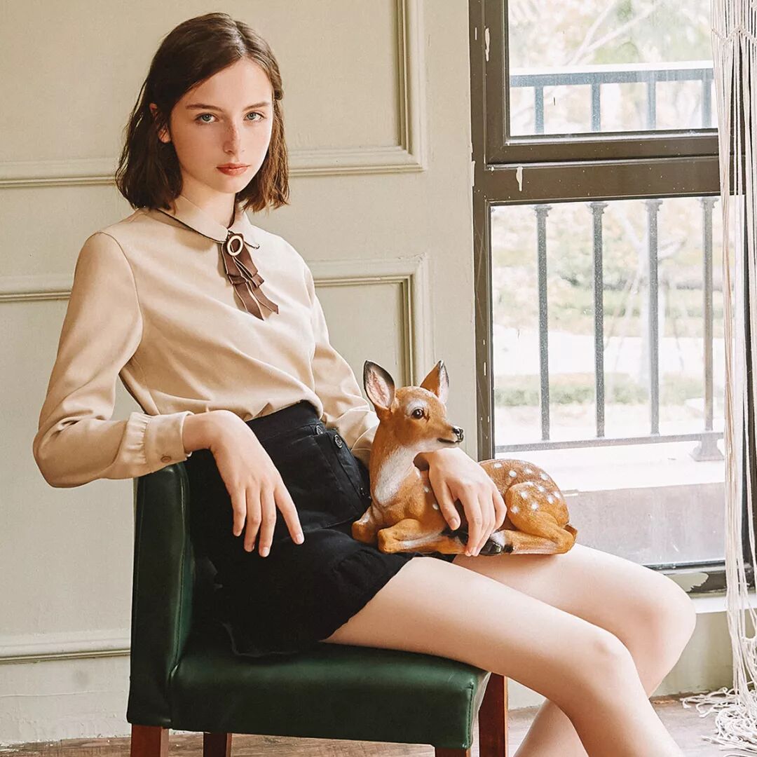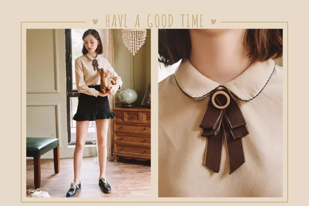 秋季新品里我最心水的是这件衬衫了,特别是领口处的蝴蝶结,别致又带有设计感,蝴蝶结的甜腻感咻一下就没了~插肩袖也十分利落,视觉上能显得削弱肩宽。