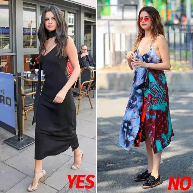 建议选择中长款的连衣裙
