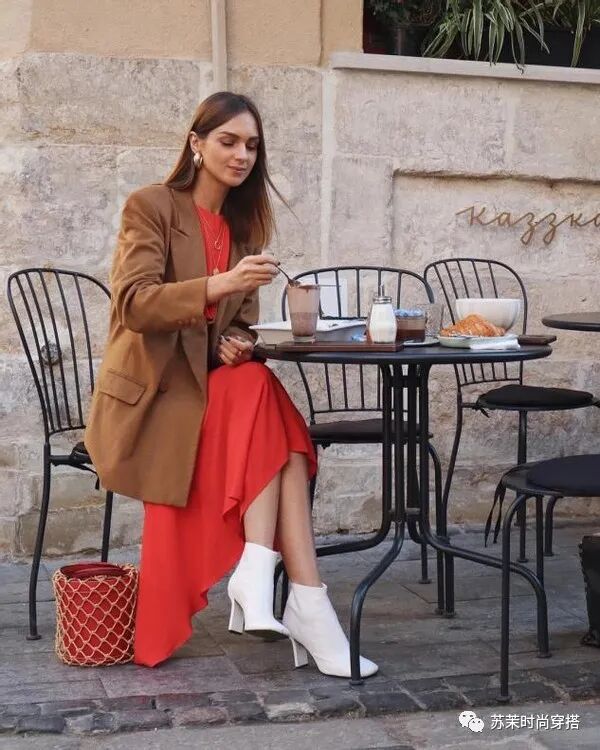 示例:西装外套+阔腿裤+裸靴