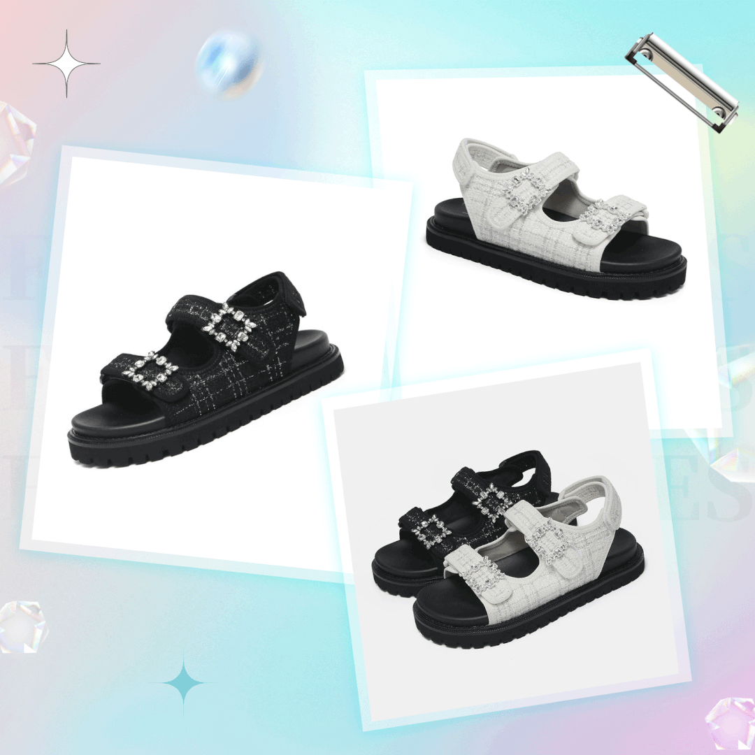 这款是香奶奶同款凉鞋,鞋面采用小香风的精细呢子料打造鞋身,舒软而有质感。