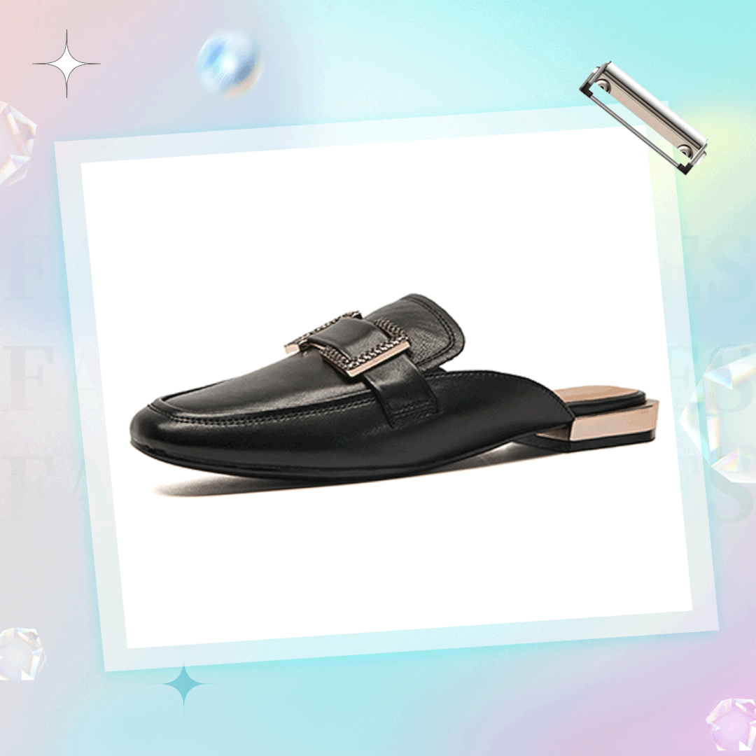 环形几何金属饰扣,为鞋头点缀以简约的气质。