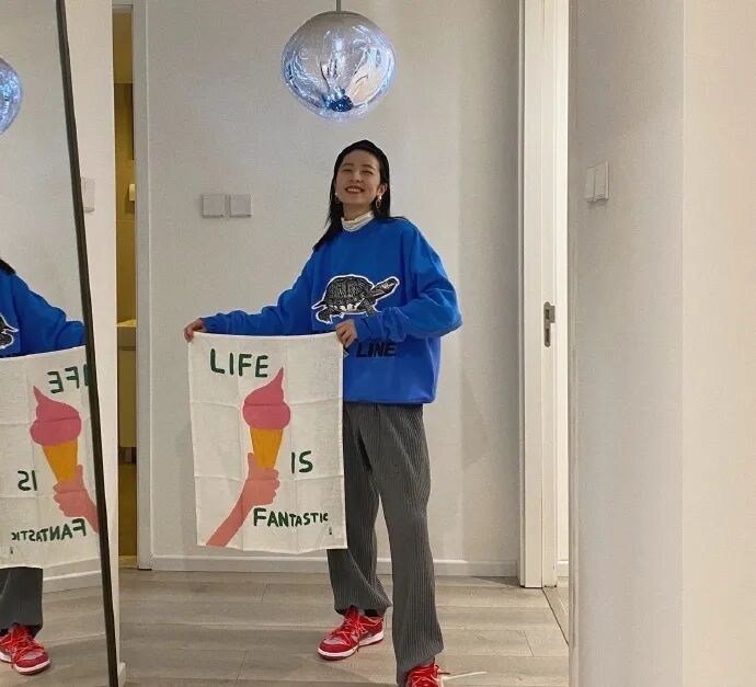 除去裤子,大家可能关注到了她的鞋,这双鸽了大家小一年的鞋子她也是第一时间就上脚了。和那双权志龙的小雏菊一样,这双鞋的噱头不小,dunk本身是Nike在AJ之前的实力作品,当家鞋型经过几年的低迷期有重新被Nike捡起,联名,新配色层出不穷,靠着经典又一次重回大家视线。