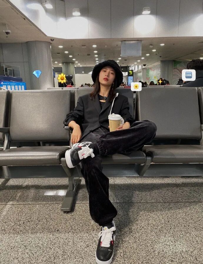 能把这双鞋穿的不像男生算是很难的,邓紫棋当时上脚也只是嘻哈工装风,很多人对这双鞋的穿搭也只停留在嘻哈风格上,而周雨桐搭配黑色线衣和灯芯绒休闲裤,把鞋子的颜色做了统一~初春天气还很寒冷,深色底调的搭配还是很有必要的,再说可以把腰线和腿长展现的恰到好处,低调的高级感就是说这样的吧。