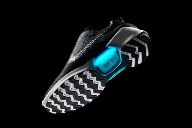 Nike SoHo 旗舰店,柜中展示的是限量发售的《回到未来2》复刻自动系鞋带球鞋 Nike Mag