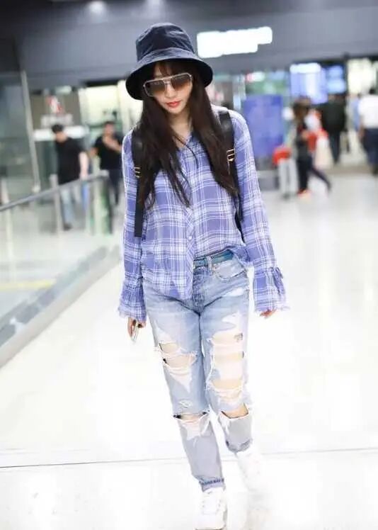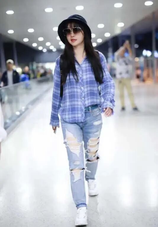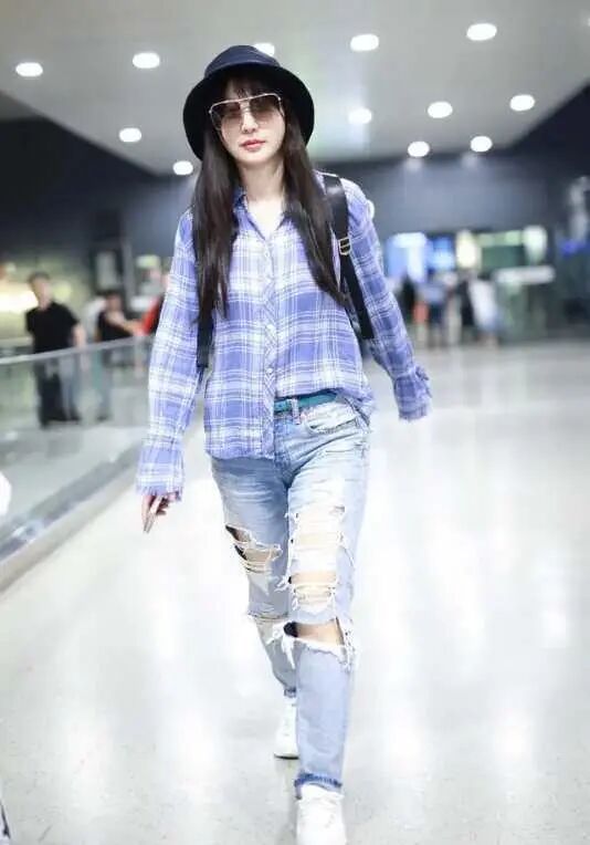 小姐姐们一定都知道柳岩,她可算是女明星中微胖的少数人,不过这样的身材其实是很好看的,这次的机场照柳岩就穿了一身与之前的形象不是很相似的低调穿搭,却有一种别样的美丽。紫色的格子衬衫搭配当前超级时髦的而浅蓝色露洞牛仔裤,加上一双百搭小白鞋,一身非常朴素的穿搭,却因为一些小小的细节,拉高了档次。