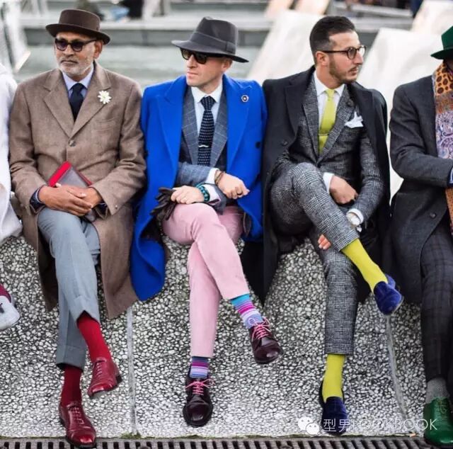 大叔除了同样的搭配法则之外,还告诉我们彩色袜子宁长勿短。
