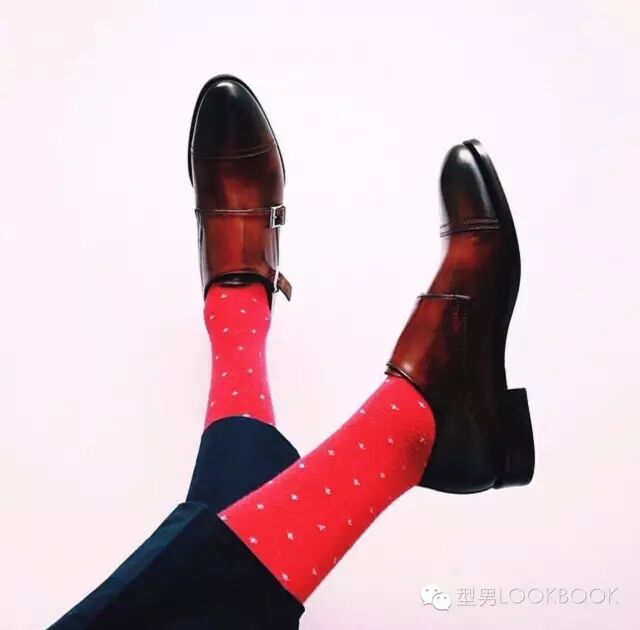 选择相对暗花纹的袜子和围巾会显得稳重一点,枣红色袜子搭配孟克鞋和西装加上高领毛衣,很绅士优雅,商务范可以大胆尝试,枣红色袜子在不经意间流露出来同样显得有品位。