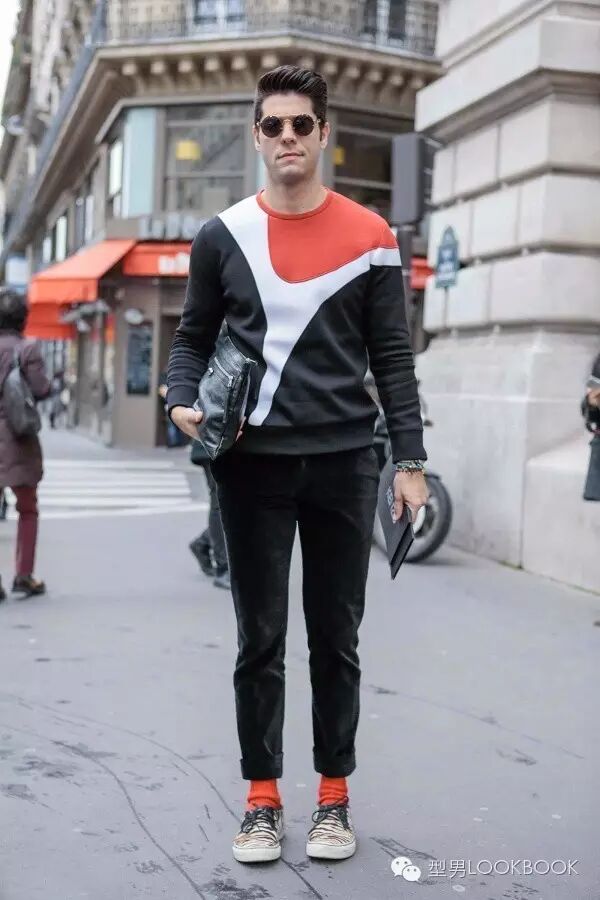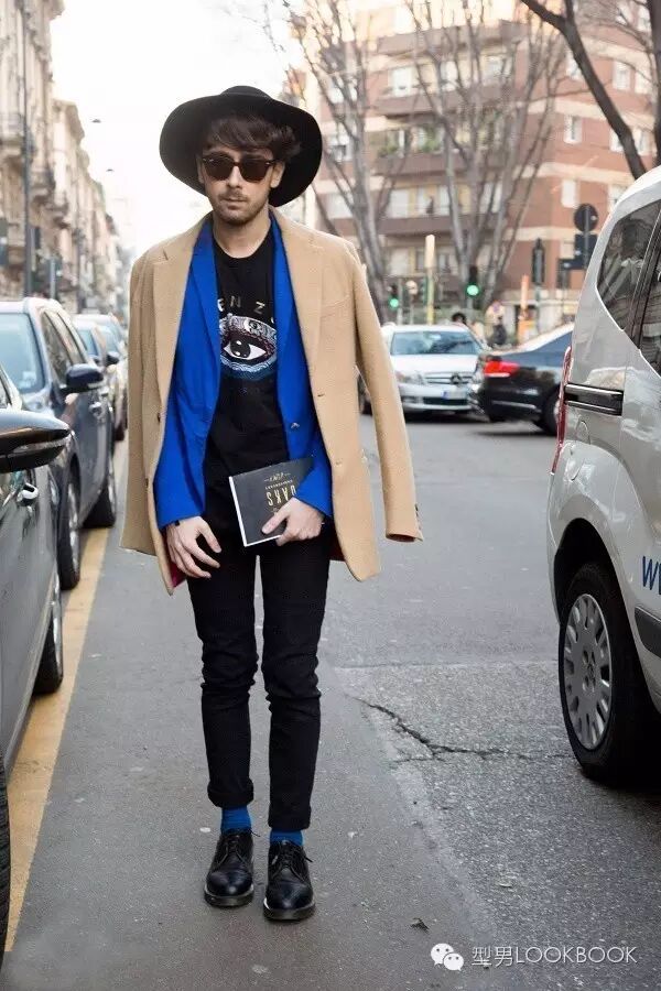 时装周街拍型男就是很好的案例,他们也热衷于颜色的袜子,想要在高手如云的时装周街头脱颖而出,搭配一双颜色袜子也是一个很好的技法,型男们的穿衣搭配技巧值得我们学习参考。