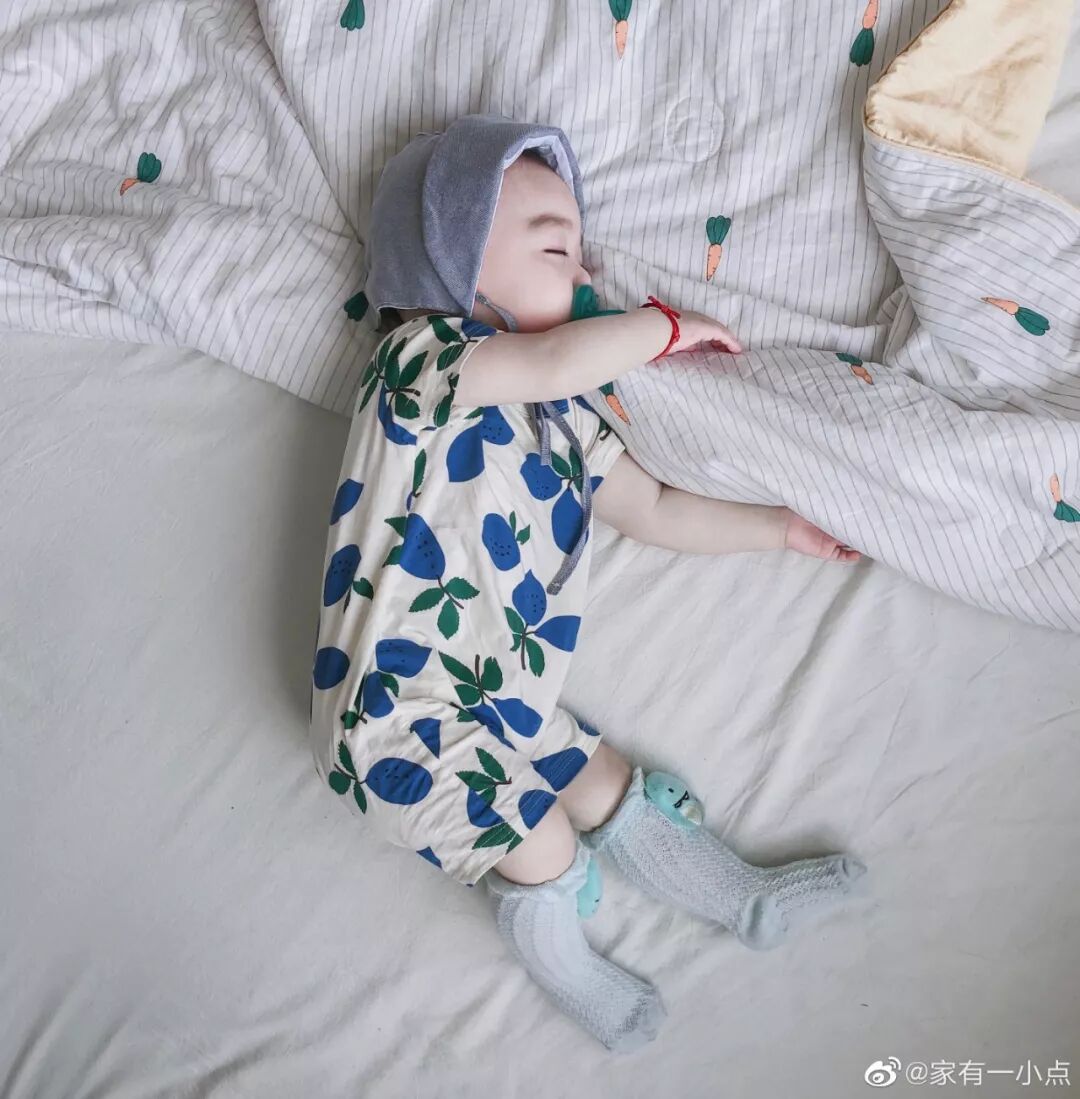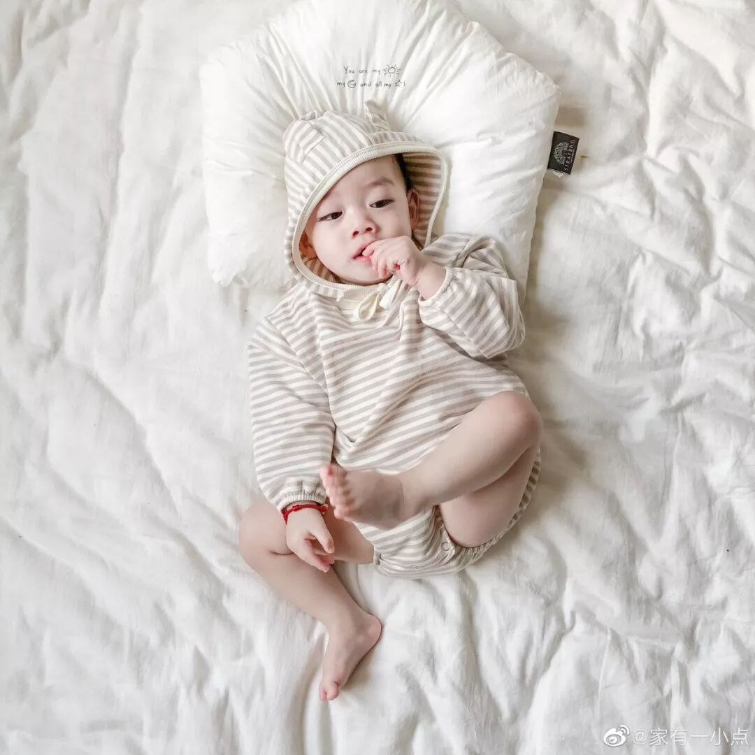 在拍摄躺着的宝宝时,无论是手机还是相机,注意和床保持垂直平行,在保证有足够留白的情况下,尽可能让孩子接近镜头,以便获取更高质量的图片。跟着点点妈妈,学习男婴童宝宝搭配,到她的微博发现最实用又好看的男童小搭配吧~点点
