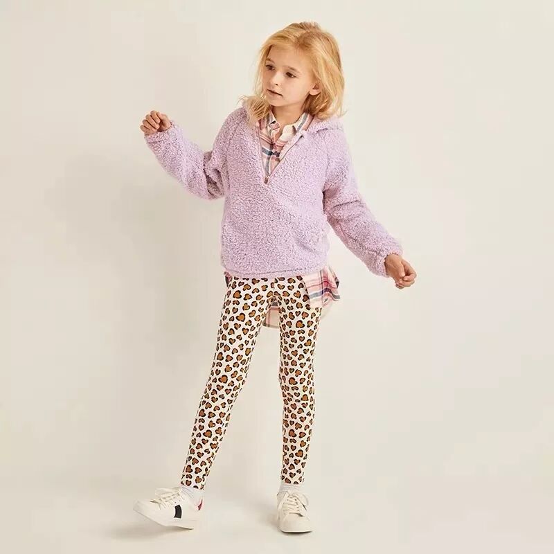 △粉色系卫衣带着一丝丝淡雅,把小孩水灵粉嫩的特性体现的淋漓尽致,搭配上时尚而魅力的豹纹打底裤给人带来眼前一亮的视觉效果,足够醒目和潮范,个性又好看!