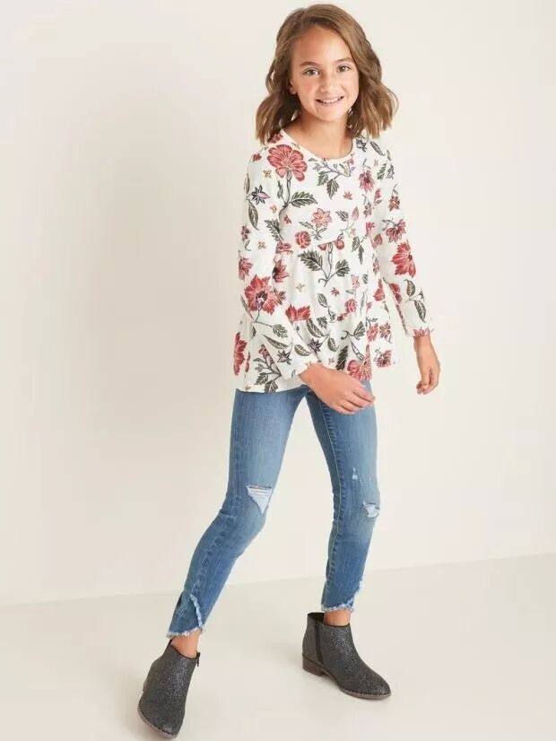 △爱美的小女孩们少了什么都不能少了一件印花上衣,材质舒适的印花上衣与牛仔裤或休闲裤相搭恰到好处,时尚的造型衬出小女孩们优雅和淑女的气质。清新亮丽的印花元素给了简单的衣服新的时尚和活力。看着这样亮丽的色调,好像连心情都要好不少呢!