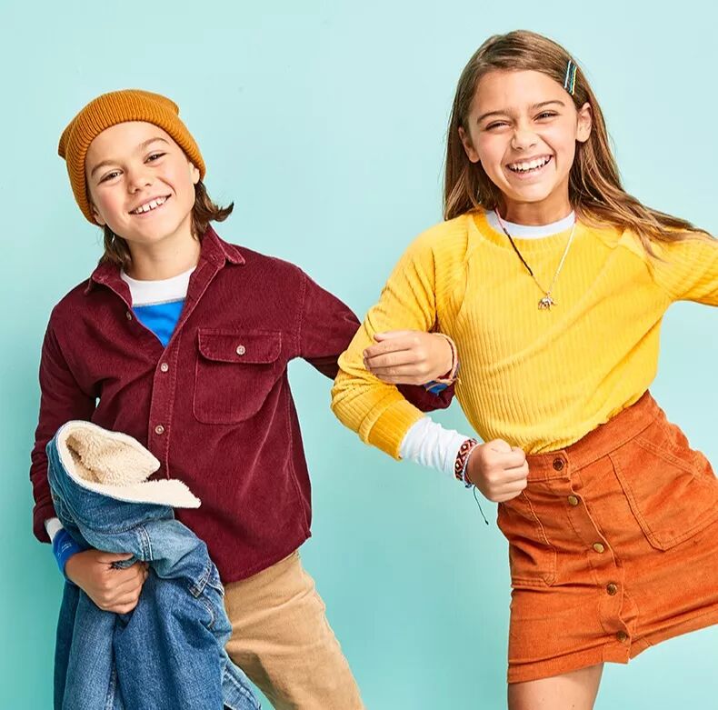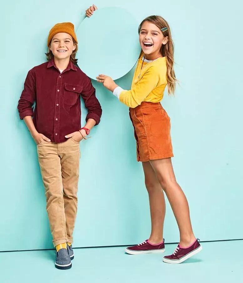 △灯芯绒衬衫的复古感搭配上白色上衣的时尚气质,整体搭配出来的效果特别时髦哦。下身可以搭配灯芯绒长裤或者灯芯绒A字裙,将孩子的元气可爱就完完全全地凸显出来。小女孩可以再配一个撞色的复古红色小包包,一个精致迷人的复古小女郎就出现了。