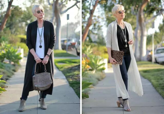 上面这位美国博主已经快六十岁了,时尚起来也是毫不含糊。奶奶级别的年龄了,腰腹不可避免地堆着松掉的赘肉,但是,请看下图。