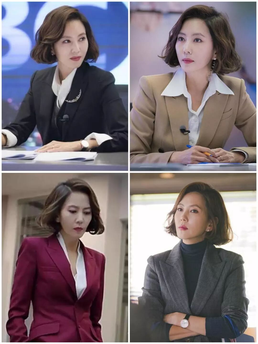 此后的剧集中,作为知名电视台当家主播,干练不失性感的西装成为高慧兰的主打造型。尽管主要是西服+衬衫的搭配,但大胆的颜色和各种小细节如胸针的点缀,让她身上的女士西服完全摘掉了“老气”、“死板”的标签。