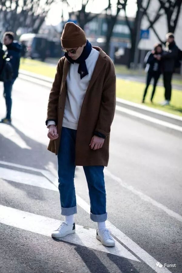 除了上述的之外,在冬季我们还可以选择一顶不同色的帽子。来提高视觉重心